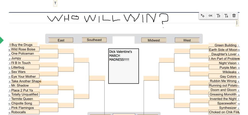 It’s still rather early in the tournament as I write this, but so far there have already “games” so close that “overtimes” have been needed to determine which song moves on. the excitement is there, the excitement is palpable, and it the excitement building.