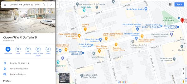 The location where I captured the image is the eastern end of Milky Way, an alley just south of Queen Street. It runs from Dufferin in the east to Cowan in the west, and is not unlike Graffiti Alley, “Toronto’s most unexpected tourist attraction”.