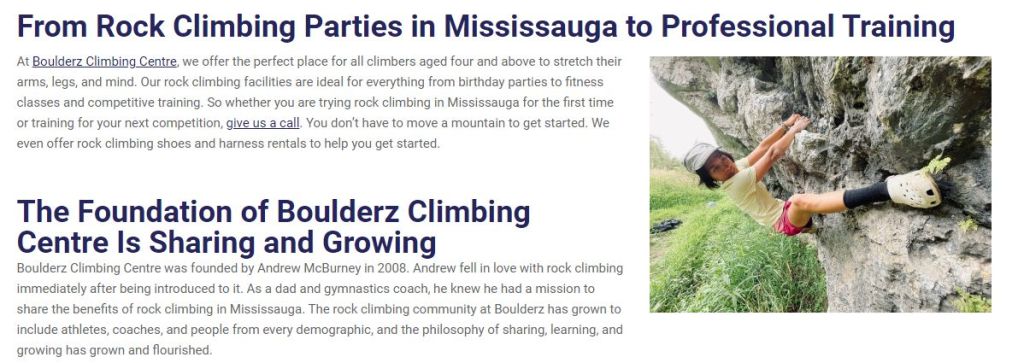 I incorporate keywords and company name into the H1, keywords and location into H2, and use both internal links and quality/authoritative external links. Internal links are intended to build interest in the company and keep the reader on the site. Naturally conversation is always a goal, so the CTA is usually “Contact us…” I often use bullet lists, knowing that most people scan this sort of copy on their phone or other device.